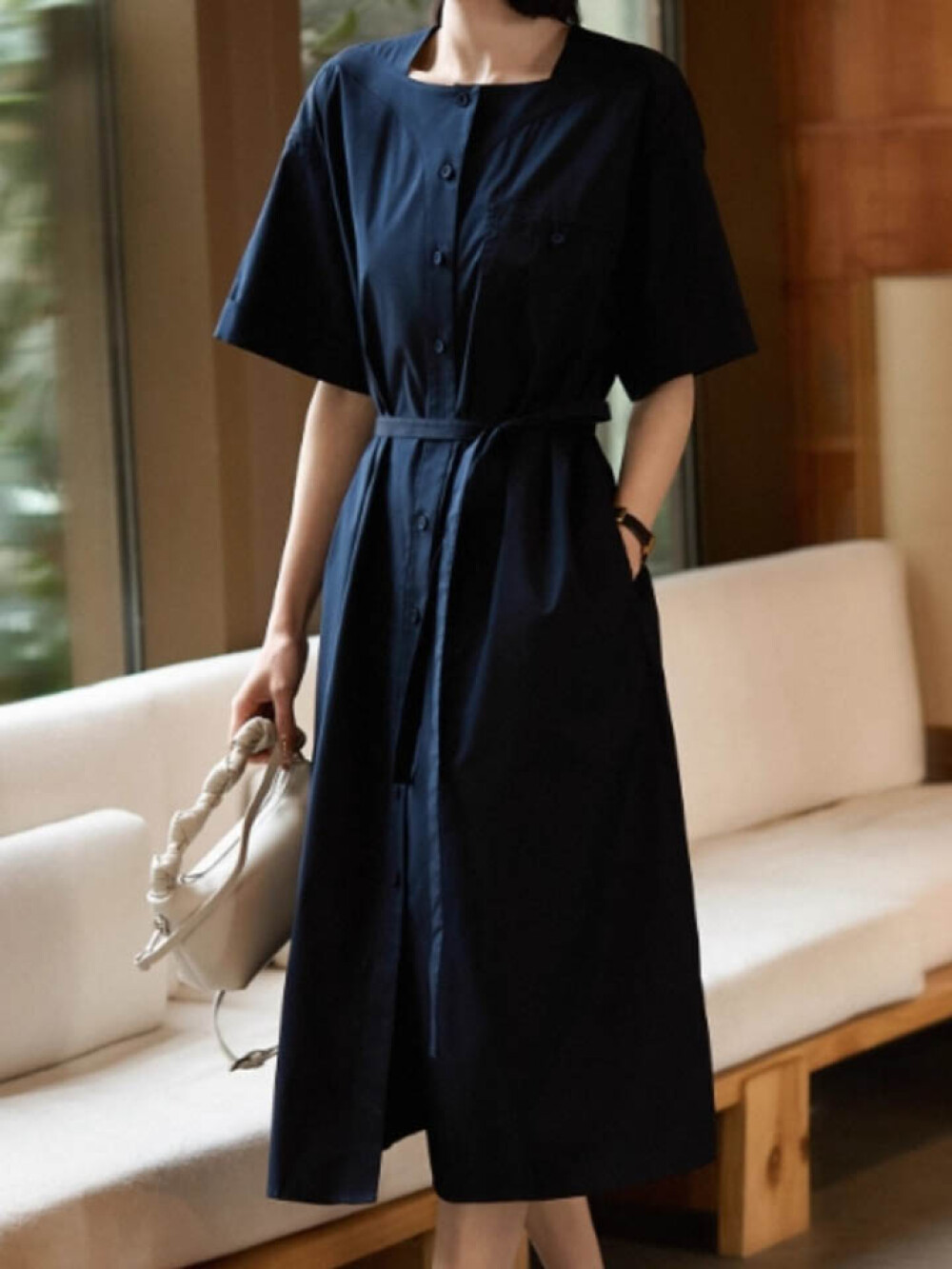 [허그허그] 스퀘즈 벨티드 심플 원피스