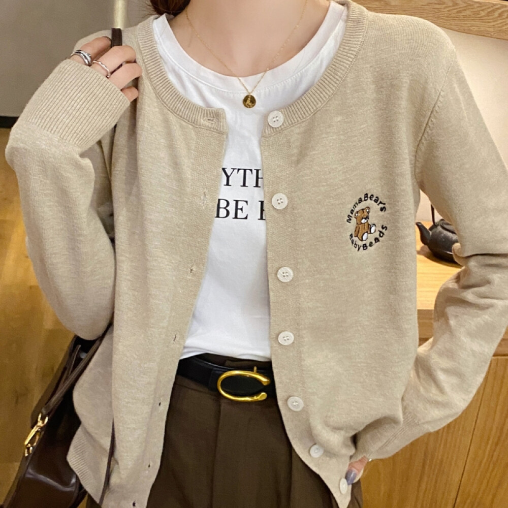 [허그허그] 퓨즈 곰돌이 패치 니트 가디건 5color