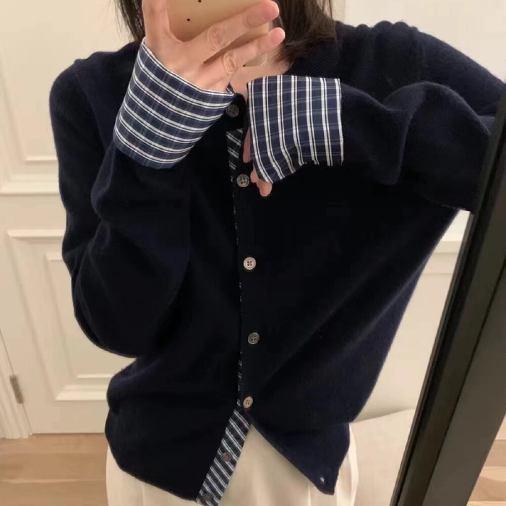 [허그허그] 하펠 체크소매 니트 가디건 2color