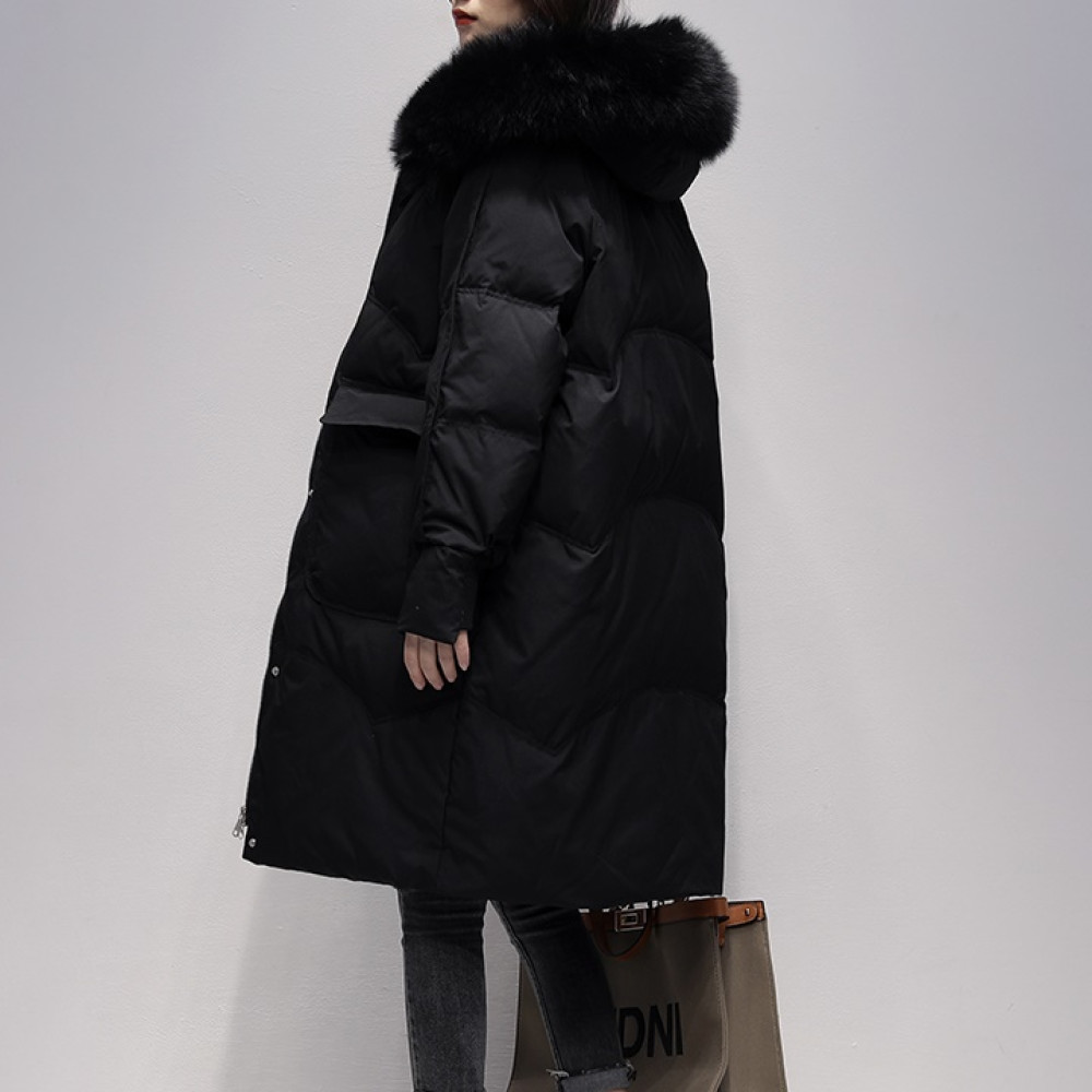 [허그허그] 프렌치 더클 덕다운 롱 패딩 자켓