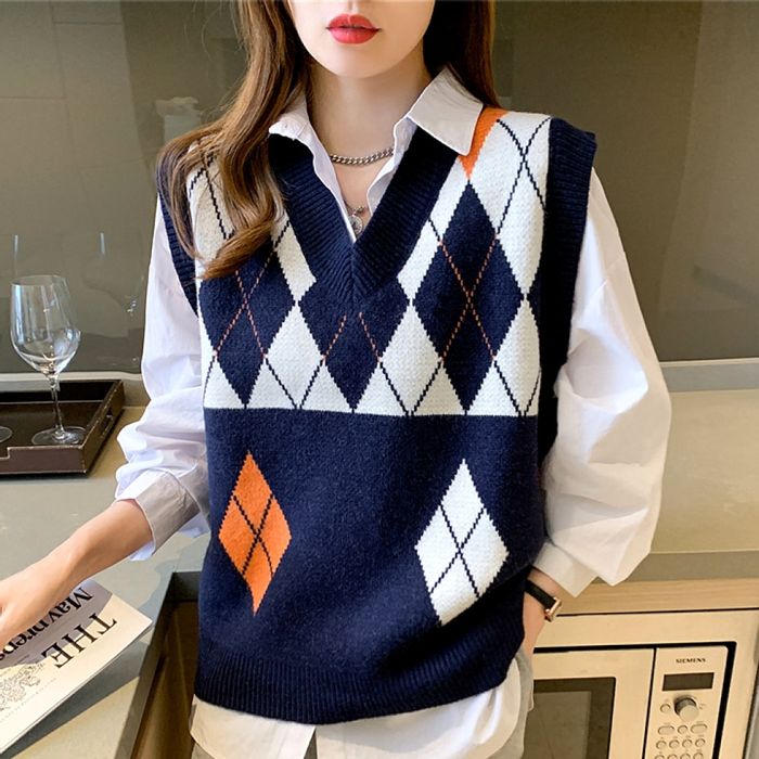 [허그허그] 아킬즈 아가일 체크 니트 베스트