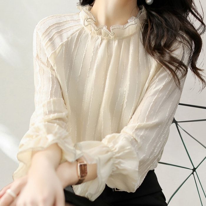 [허그허그] 링클리 셔링 레이스 블라우스