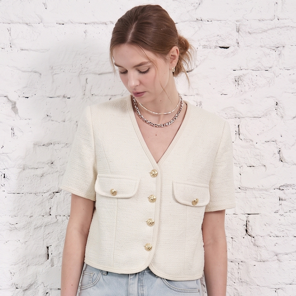 (레코브) 트위드 브이넥 반팔 자켓(LG61C8JK530X)