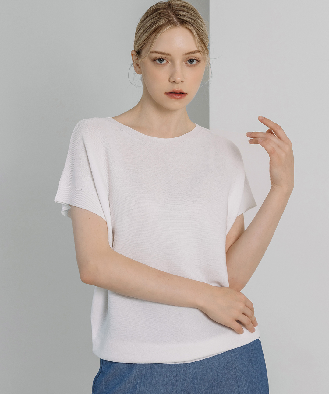 보트넥 드롭 숄더 반팔 니트 (6colors) 여름 베이직 데일리 라운드넥 3부