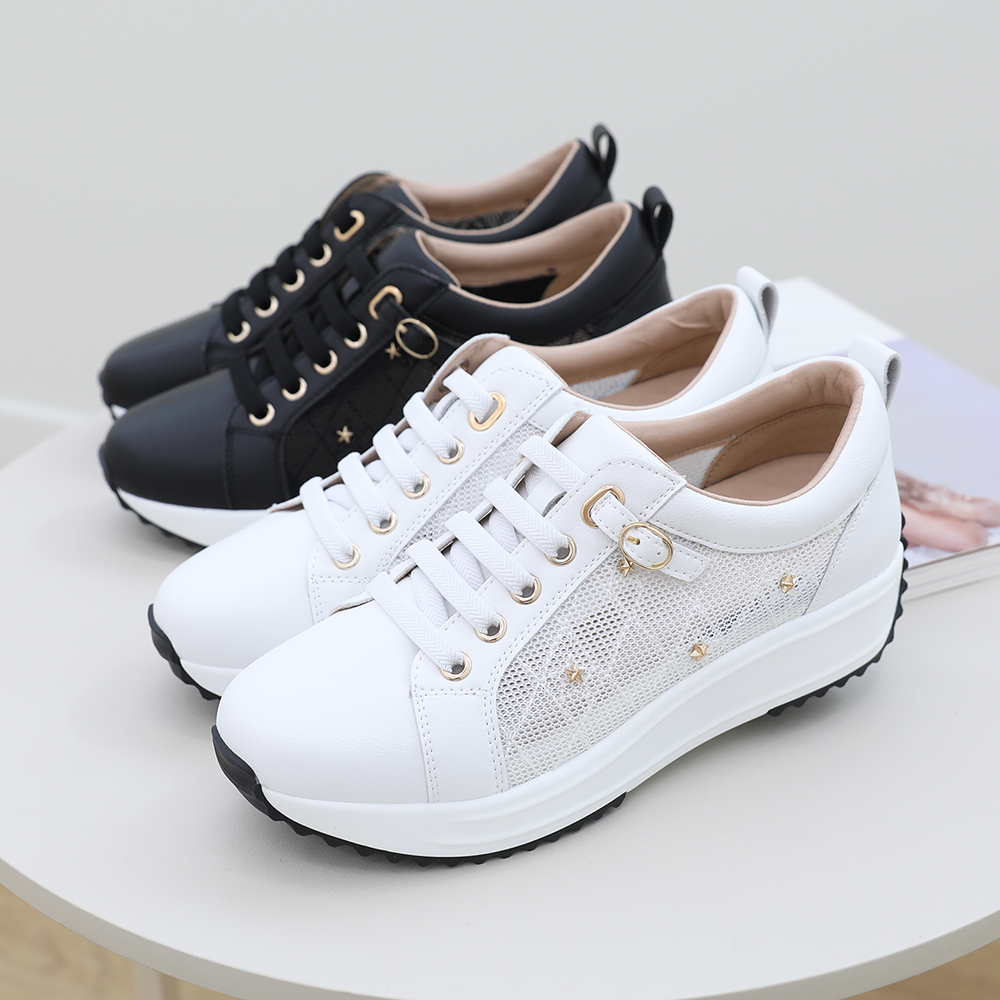 소가죽 비케드 시스루 망사 스니커즈 4cm