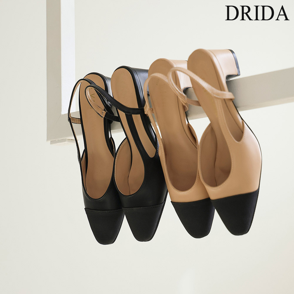 배색 단화 미들힐 슬링백 샌들 통굽 힐