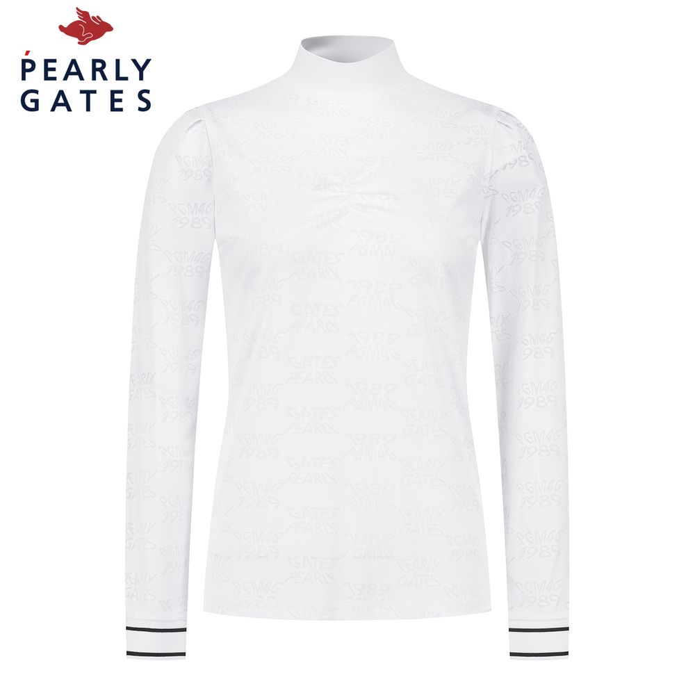 여성 로고 패턴 셔링 긴팔 티셔츠