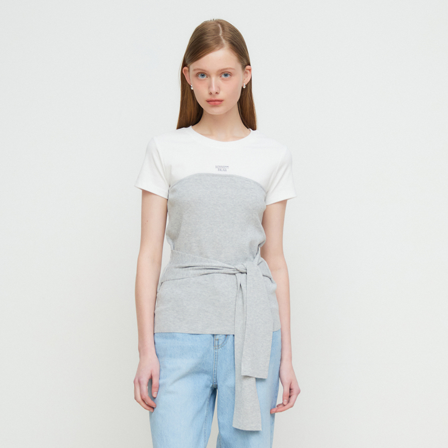 (JJ지고트) 니트 배색 스트랩 티셔츠 GR5P0TST11