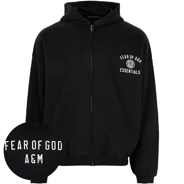 피어오브갓 에센셜 블랙 로고 헤비 플리스 후드 집업 192HO246240F
