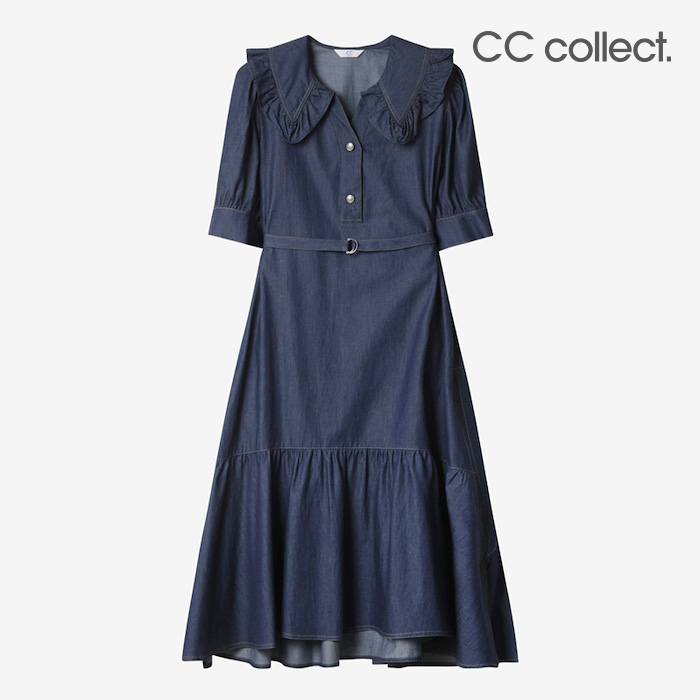 [CC콜렉트] 프릴 와이드 칼라 데님 드레스 DB_E252PSE162