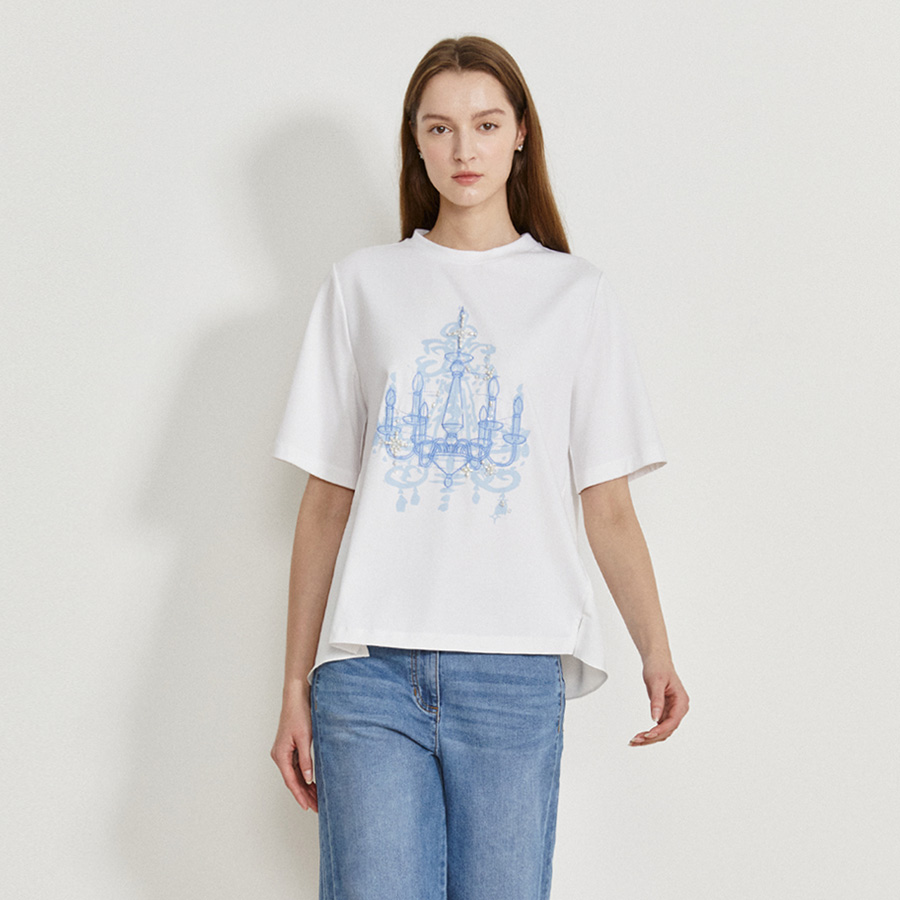 [26봄신상] (아이잗바바) 배색 비즈 장식 자수 티셔츠 BR4A0TS361