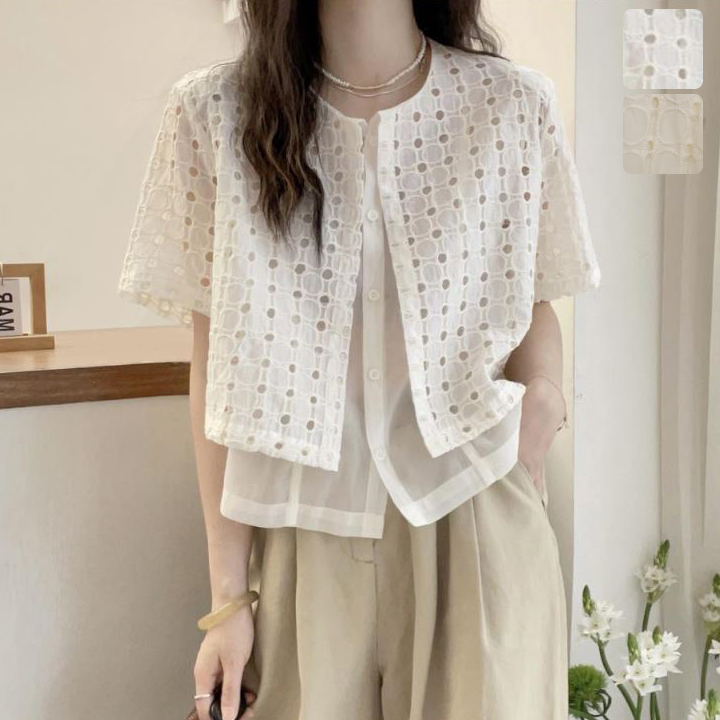 [리오더베스트] [키첼] 루이타 펀칭 반팔 블라우스