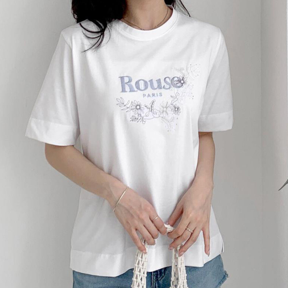 [옷자락] 여자 플라워 자수반팔티 레터링 파스텔 여름 티셔츠