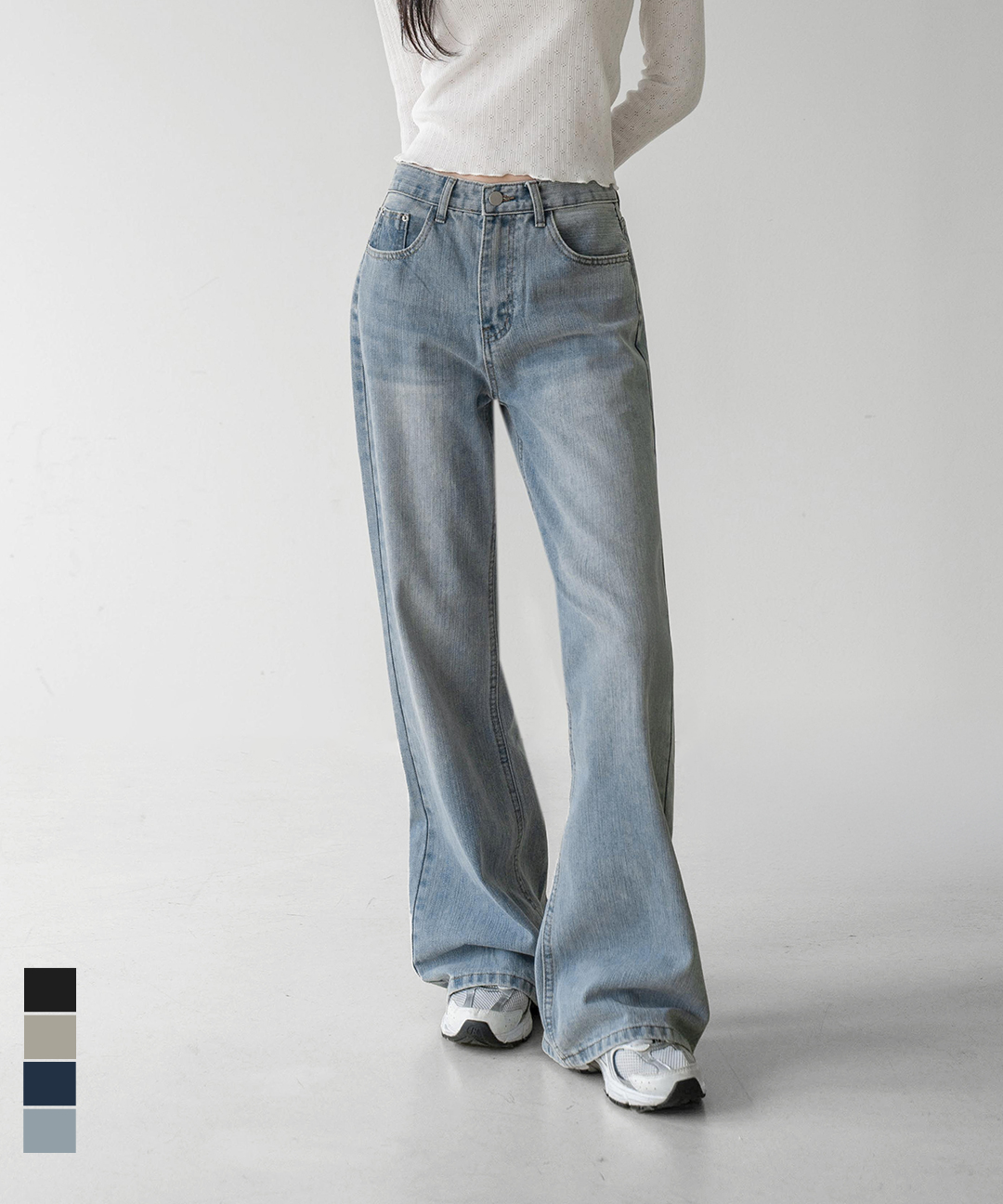 [진에비뉴] 유니크 뒷포켓 워싱 데님 와이드 롱 팬츠