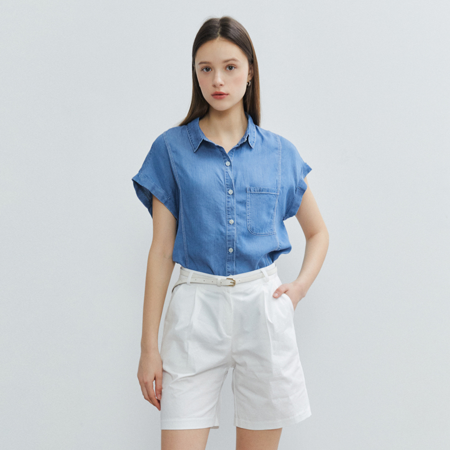 (더틸버리) 데님 턴업 셔츠 블라우스 TR6N8BL51W