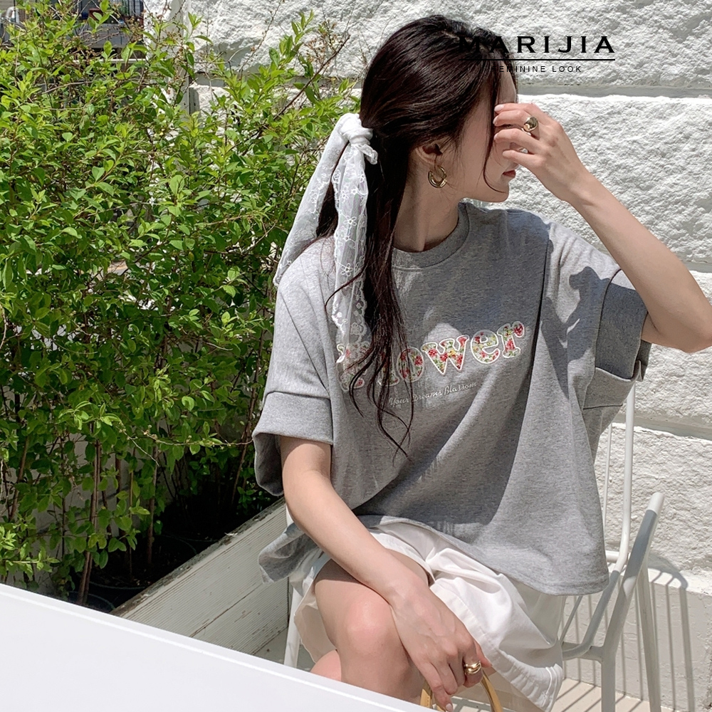 [MARIJIA] 플라워 레터링 코튼 티셔츠_MTEB21103