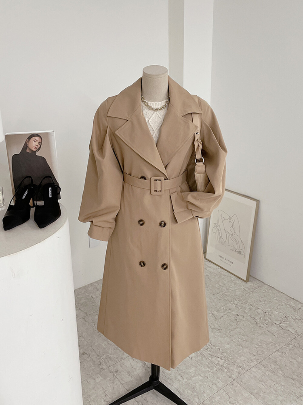 [허니제이] 팅샤 카라 핀턱소매 벨트 롱 트렌치 코트(2color)