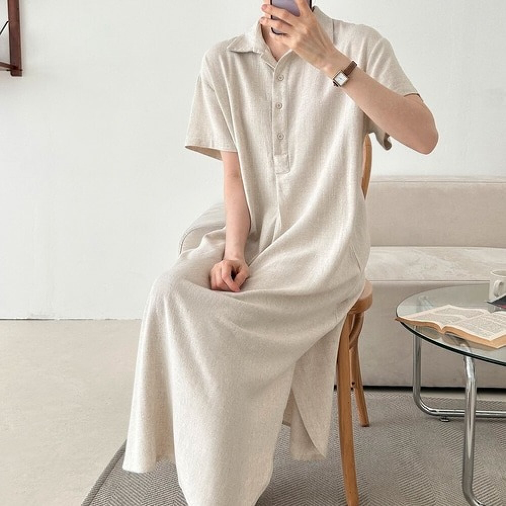 [플러리싱] 단추 카라 린넨 루즈핏 롱원피스 [플러리싱]