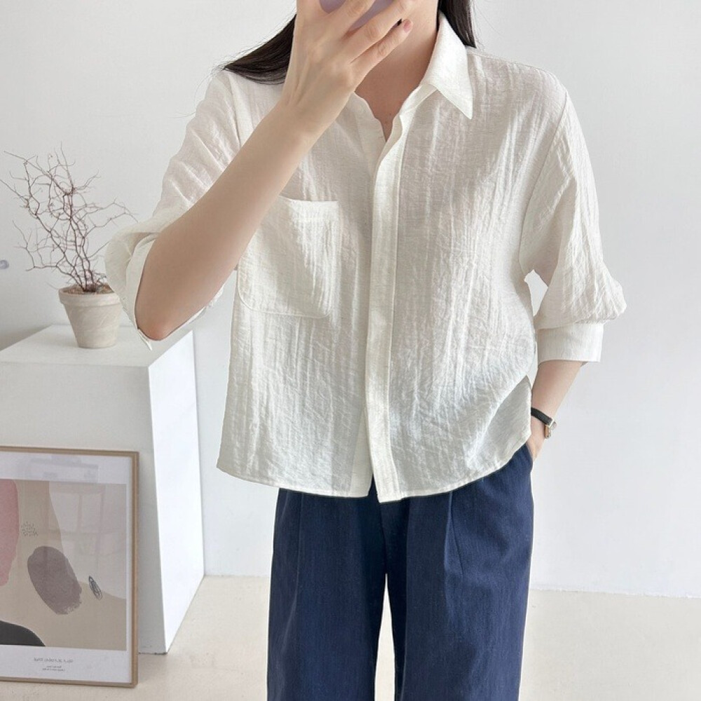 [플러리싱] 비스코스 잔주름 포켓 7부 셔츠 [플러리싱]