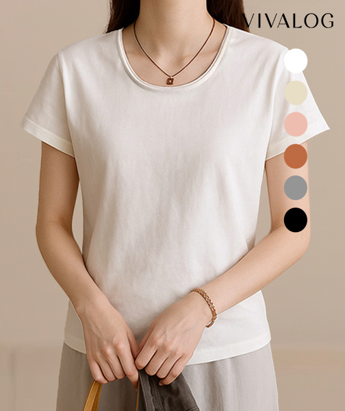 [비바로그] 헤린 U넥 솔리드 반팔 티셔츠