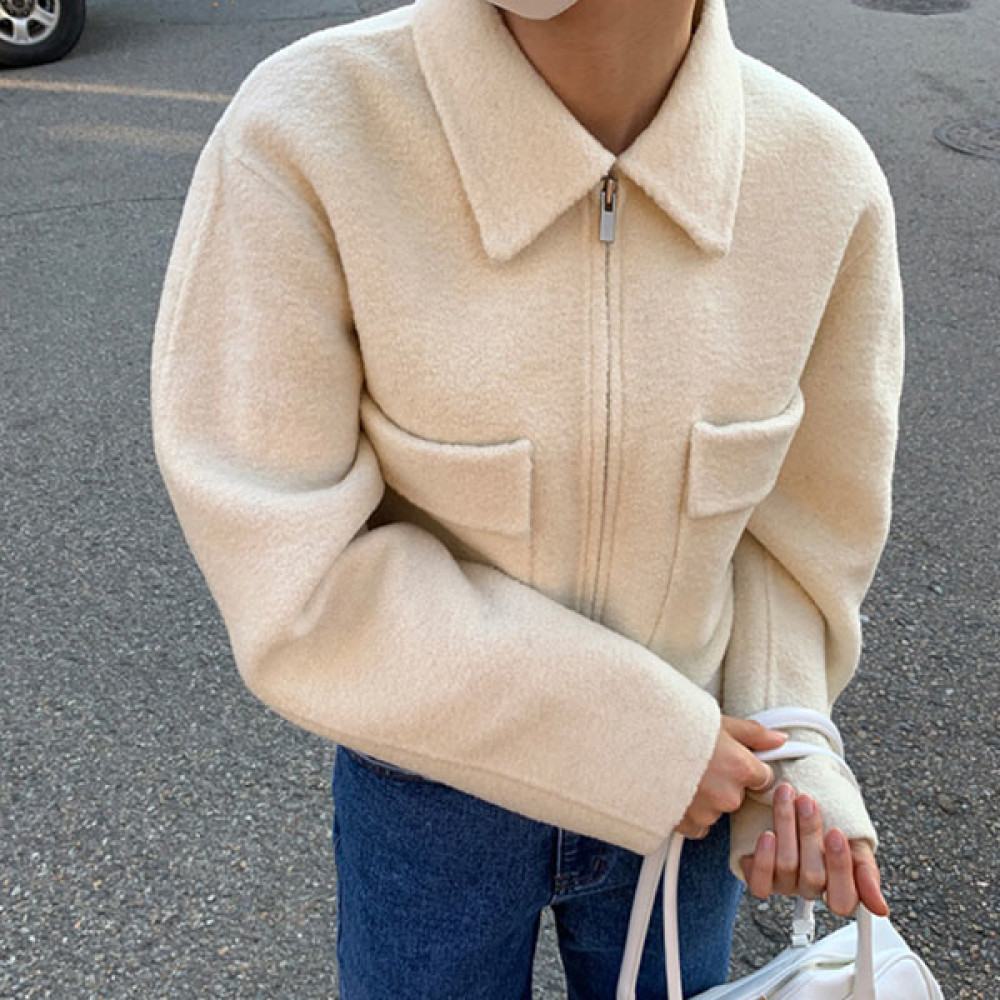 [슈팅스타] 심플 베이직 단정 카라넥 모직 숏 크롭 자켓