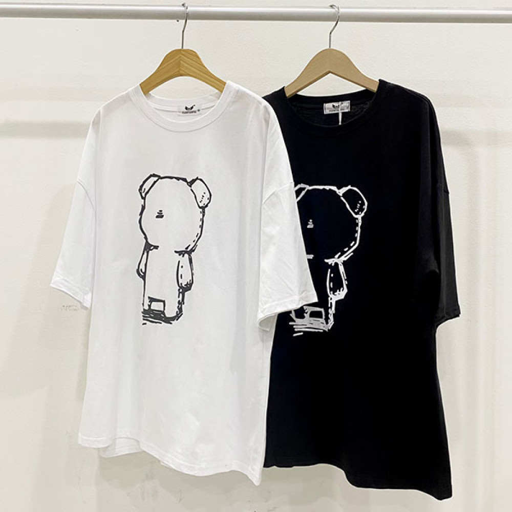 [슈팅스타] 블랙 화이트 곰들이 베이직 반필티셔츠