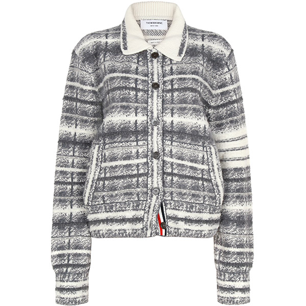 톰브라운 페일그레이 사선 TB 타탄 체크 울 폴로 카디건 FKJ086A Y9028 058