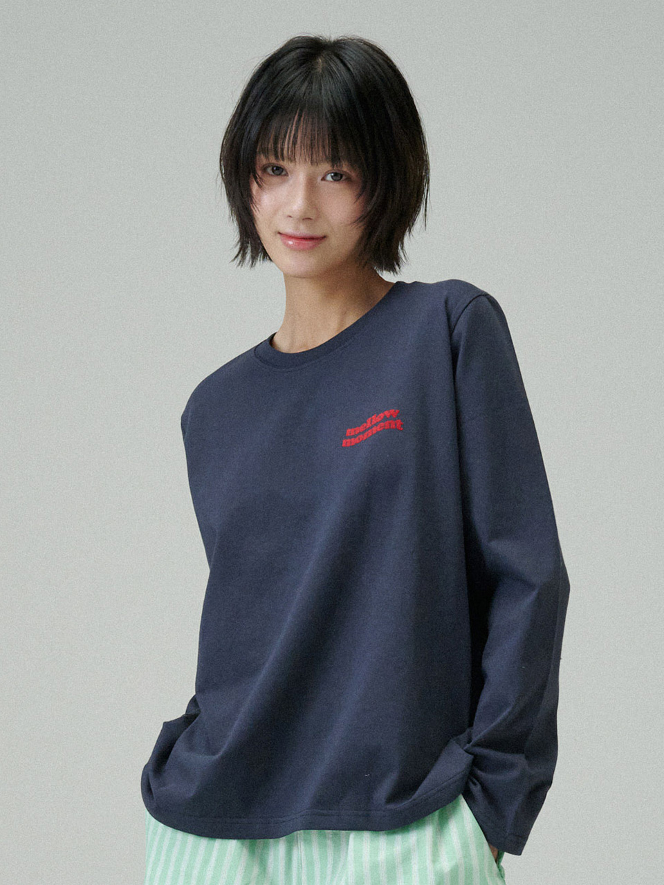 멜로우 모먼트 무지 티셔츠 (네이비)