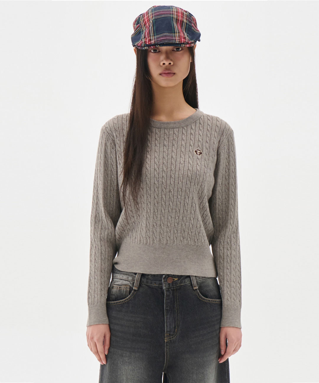 우먼 TC로고 케이블 라운드 크롭 니트 그레이