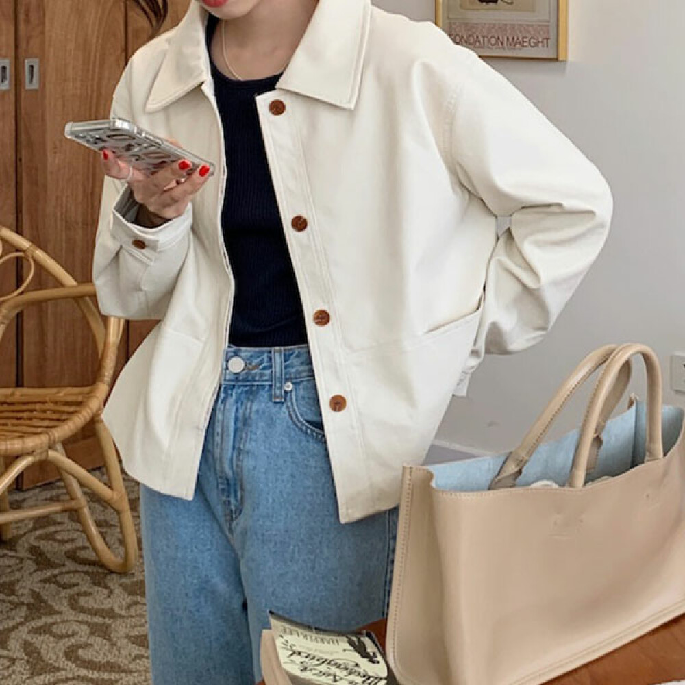 [슈팅스타] 카라넥 심플 베이직 레더 페이크 가죽 자켓 2168173