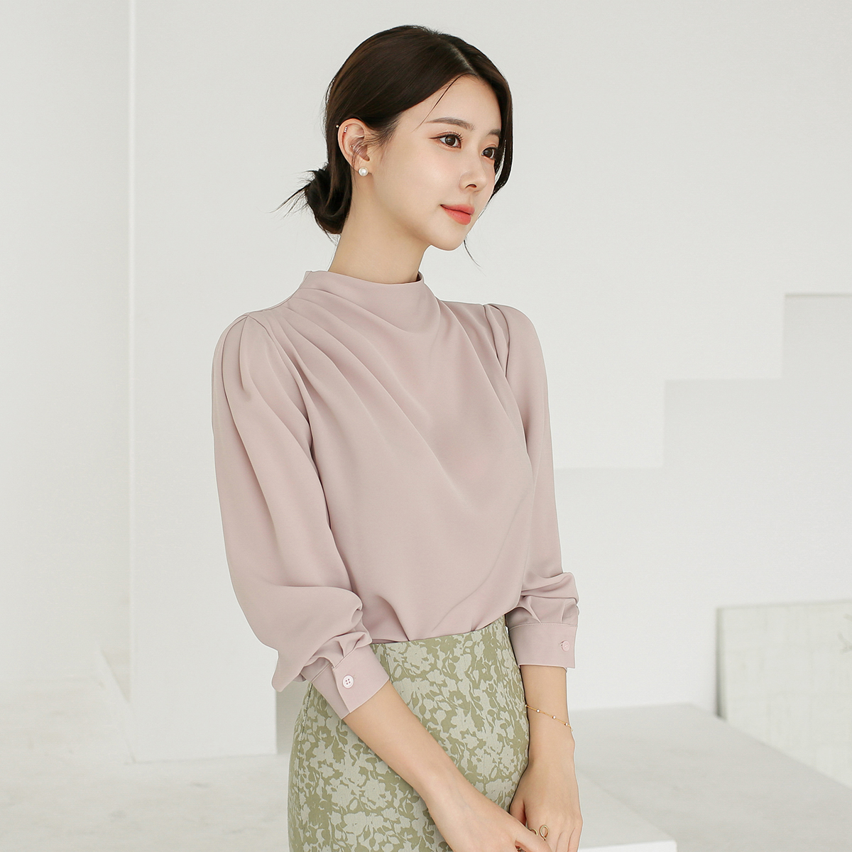 [오브리에] 로망 하프넥 드레이프 블라우스