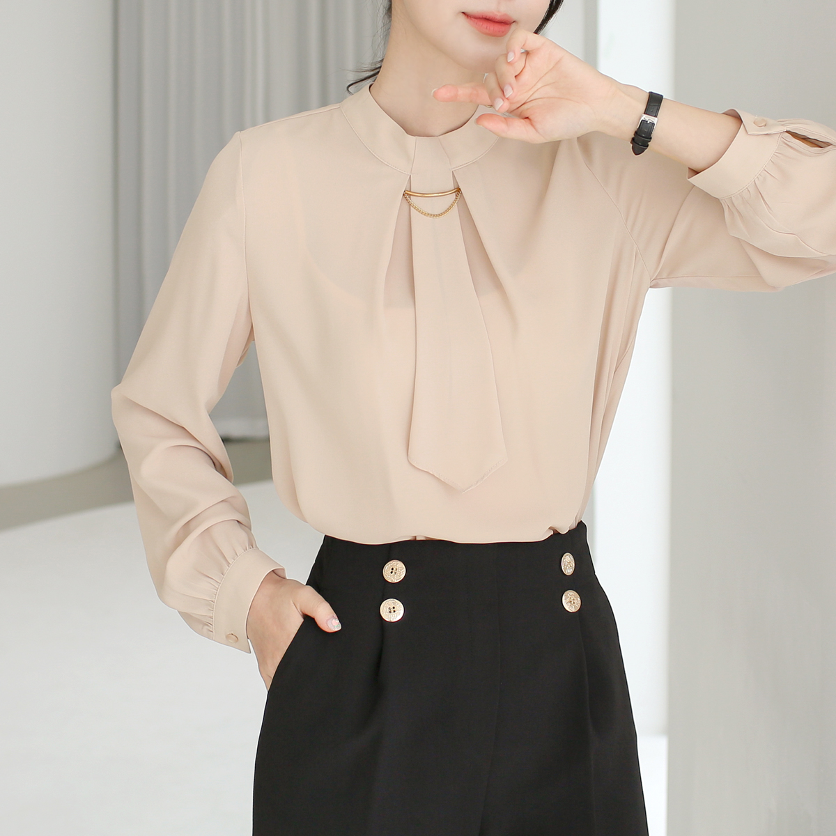 [국내생산][오브리에] 힐즈 네크리스 긴팔 블라우스