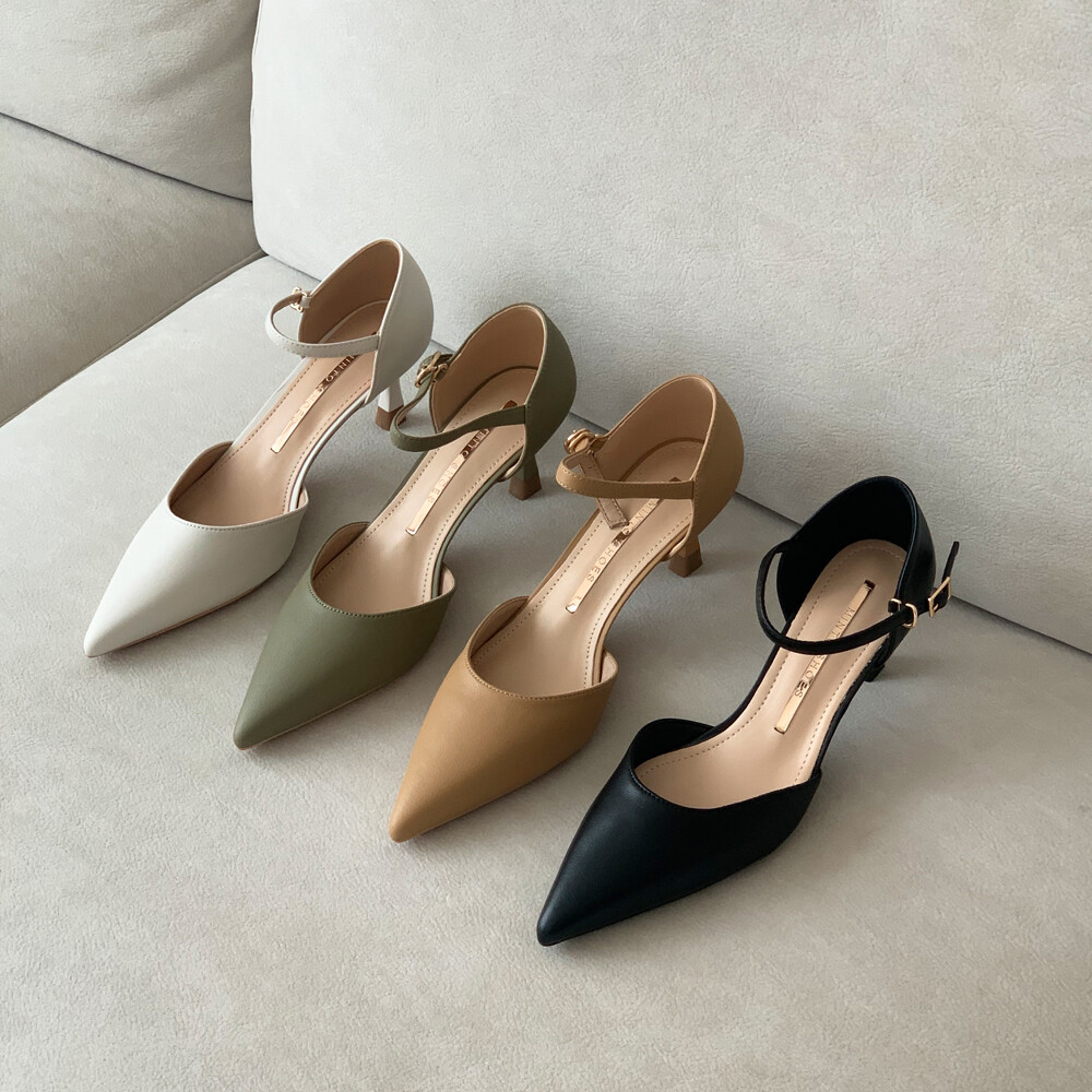 [컴온슈] 6cm 스틸레토 가죽 사이드오픈 메리제인힐 키튼굽