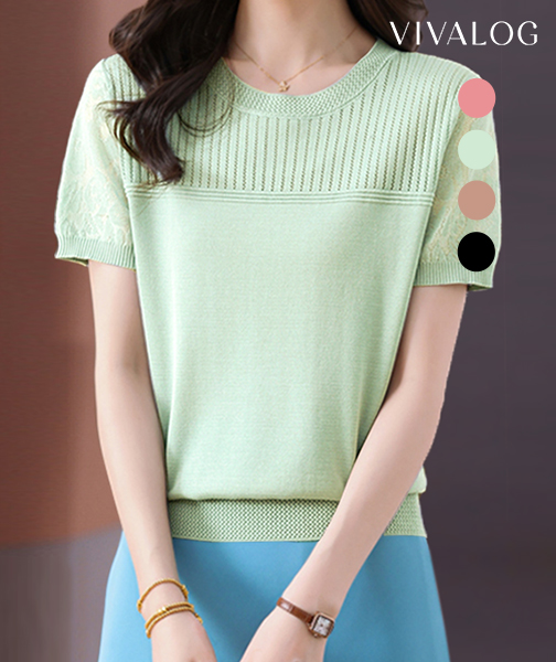 [비바로그] 무디 라운드넥 소매배색 반팔 니트
