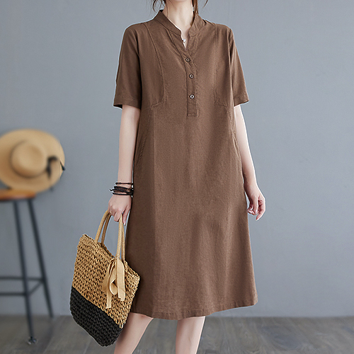 발라브 헨리넥 단추 루즈 원피스