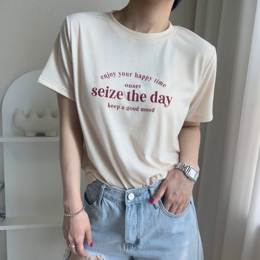 [설세라] 루즈핏 라운드 레이온 스판 레터링 반팔 티셔츠