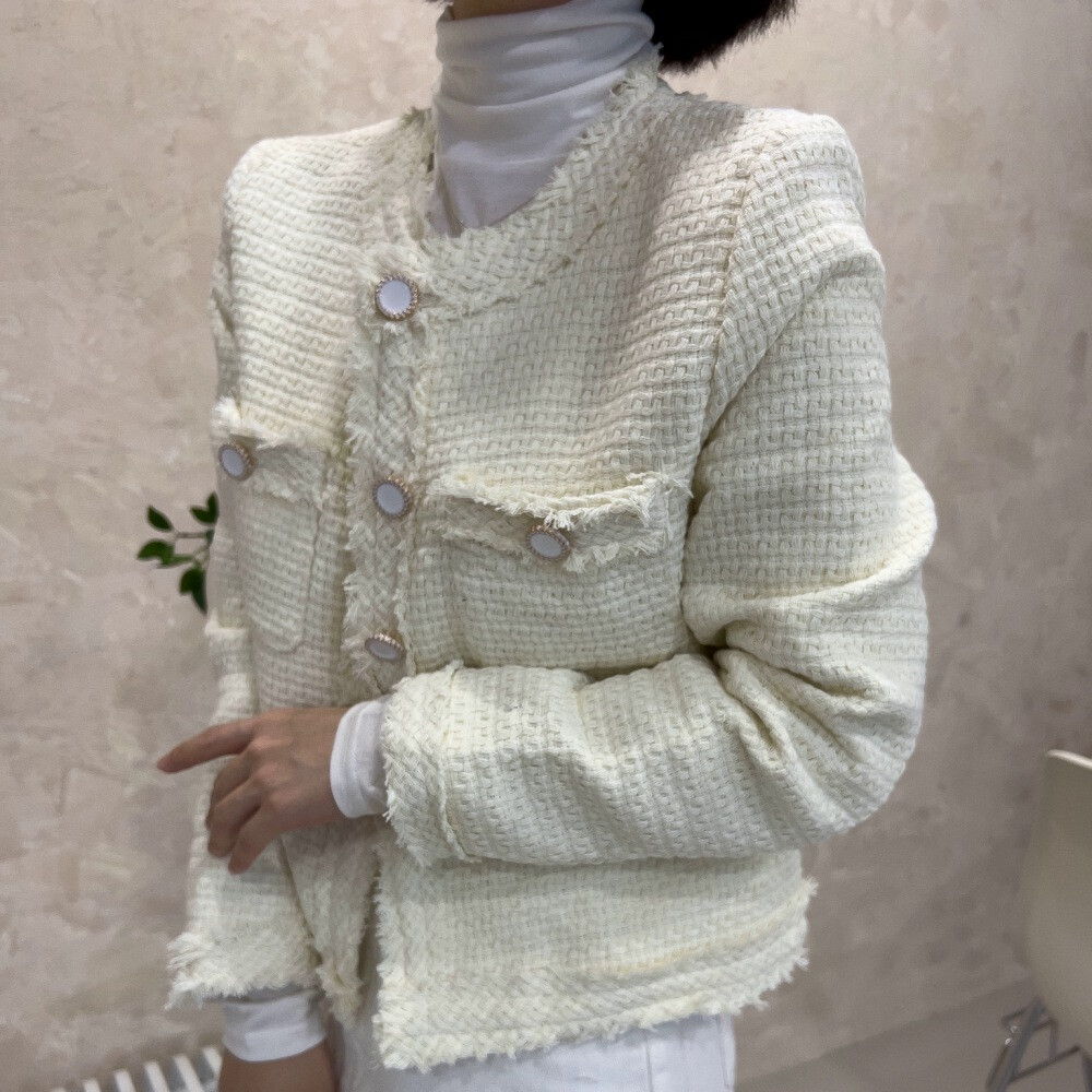 [설세라] 노카라 긴팔 트위드자켓