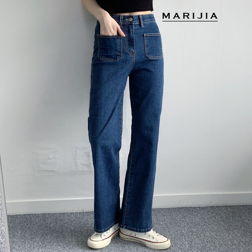 [MARIJIA] 포켓 콩 스판 와이드 청바지_MDEB25032