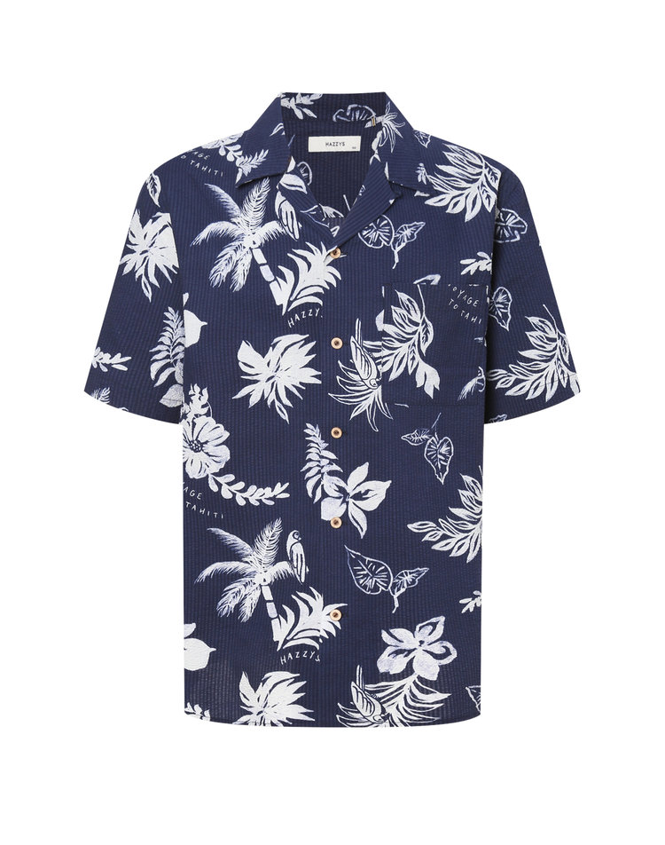[헤지스 남성]네이비 플로럴 프린트 반팔 셔츠_HZSH5B706N2