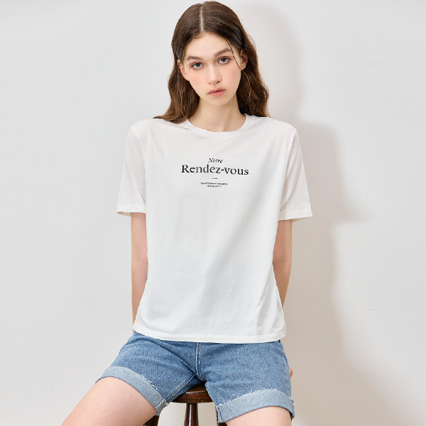 [리스트(LIST)] 부드러운소재 미니멀 레터링 반팔 티셔츠 (택가격: 78000원)