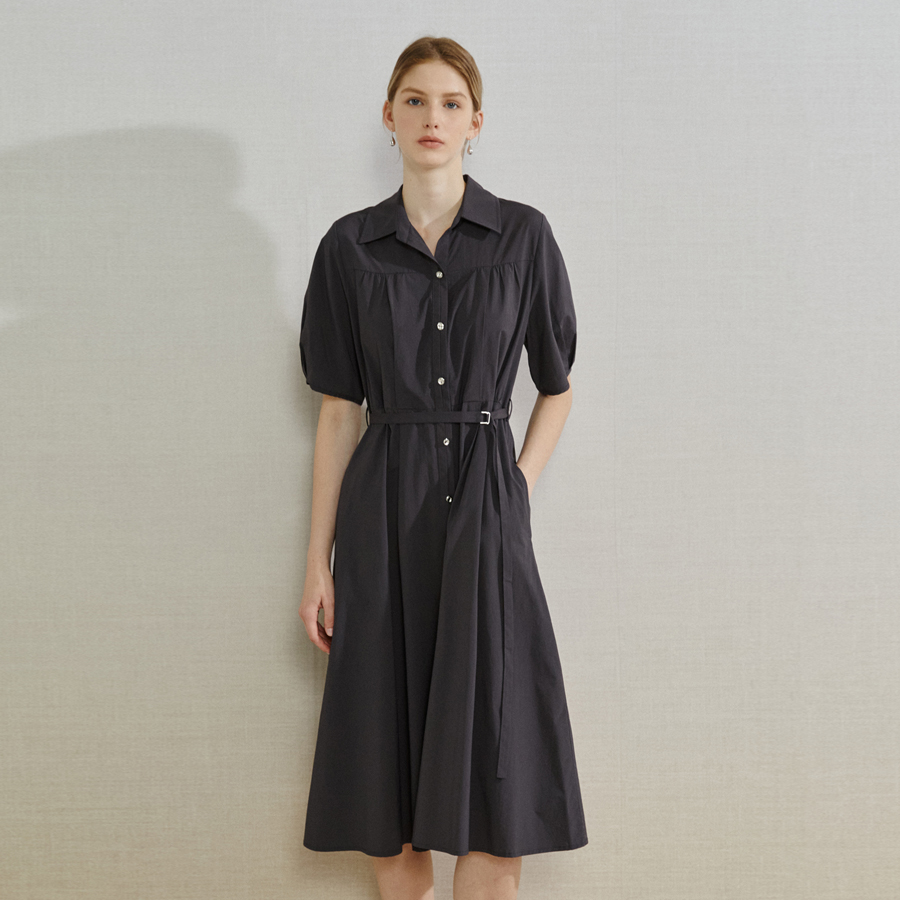 (더아이잗) 셔링 핀턱 플레어 셔츠 원피스 IR6M0OP921