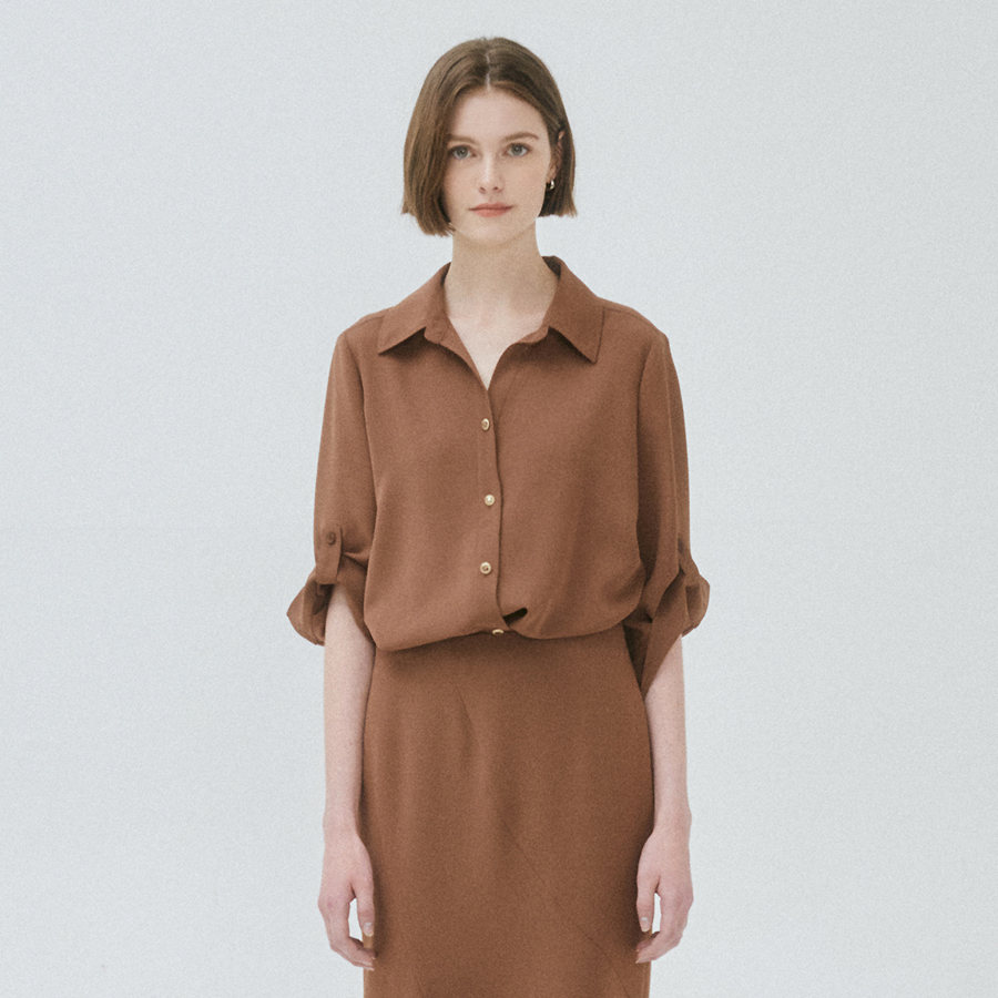 (더아이잗) 언밸런스 롤업 블라우스 IR5A0BL331