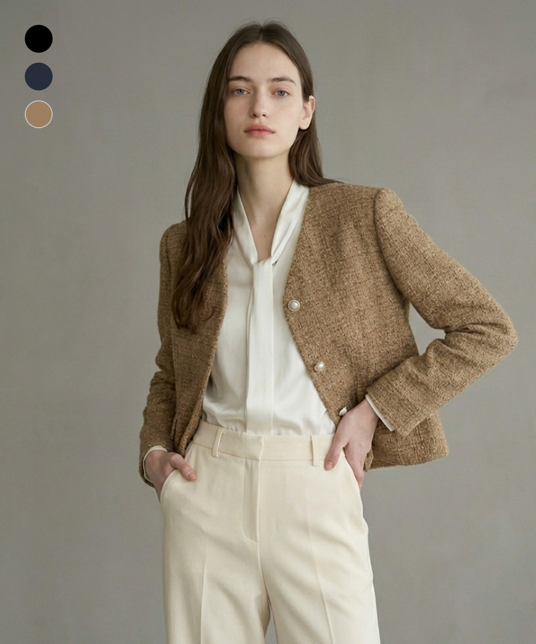 부클 텍스처 칼라리스 자켓_SWWJKP32090
