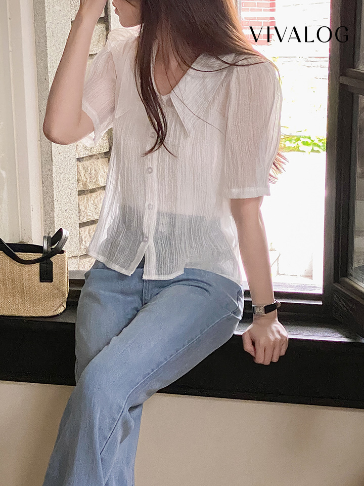 [비바로그] 포이드 링클 카라 반팔 블라우스