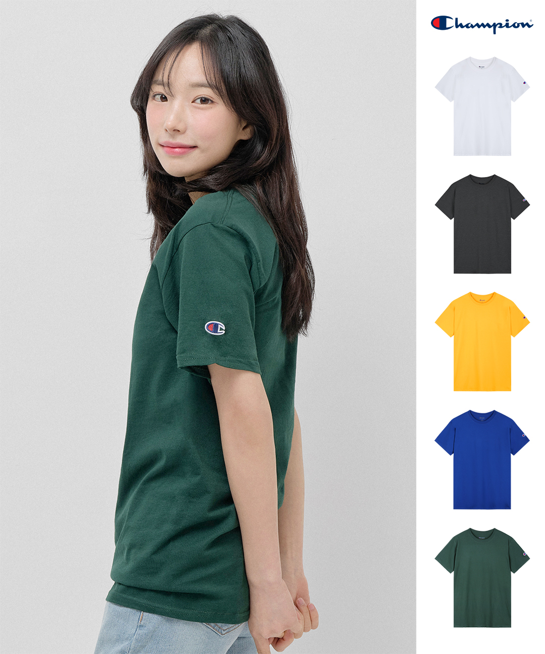 챔피온 면티 라운드넥 무지 반팔 티셔츠 T425