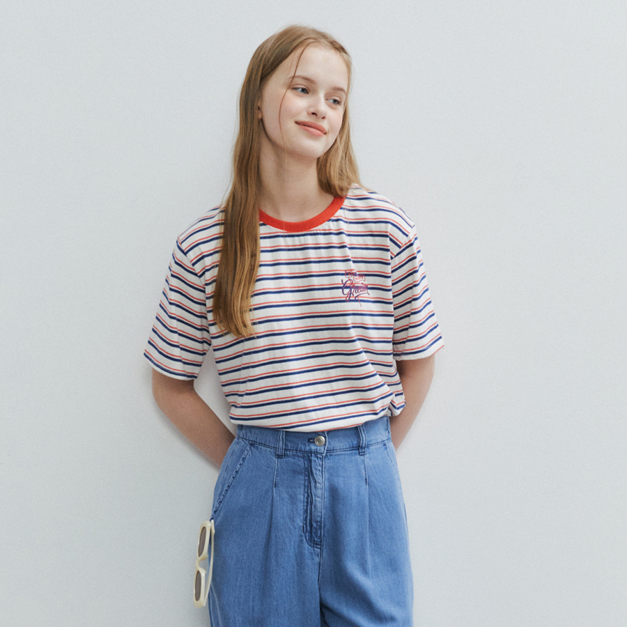 (더틸버리) 코튼 스트라이프 레터링 티셔츠 TR6N0TS55W