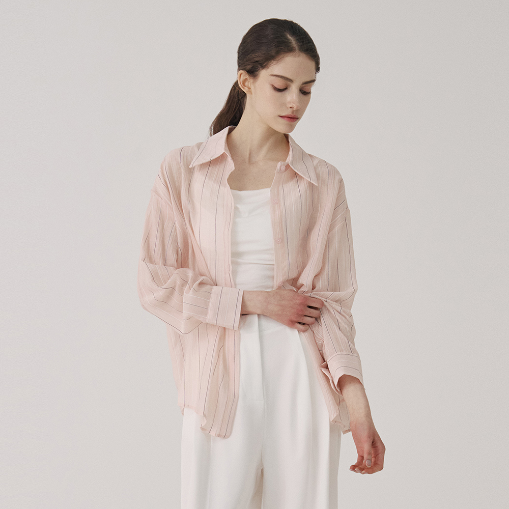 스트라이프 시스루 오버핏 셔츠(VB6LSJ1)