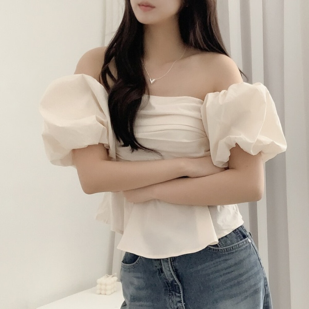 [입꼬] 오드리 벌룬 펌킨 퍼프소매 셔링 블라우스2color