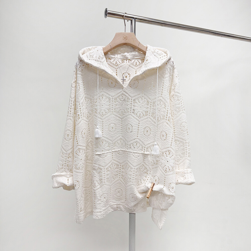 [미즈큐즈] 니팅 펀칭 레이스 수술 포인트 루즈핏 후드 긴팔 니트
