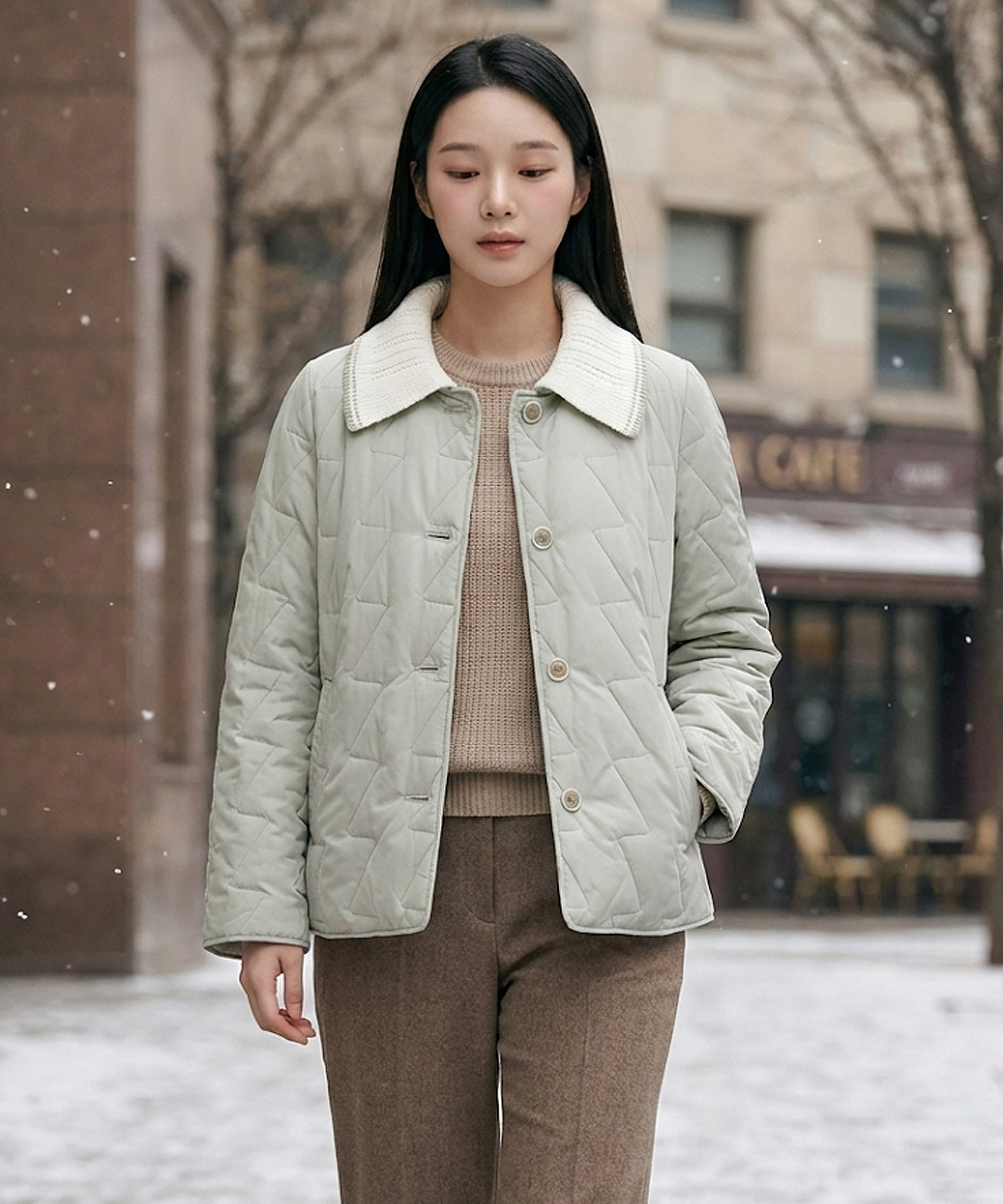 니트카라 포근한 라이트카키 패딩_CLDWPD101